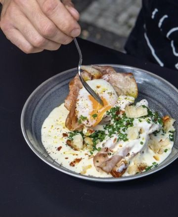 Žádná snídaně šampionů se neobejde bez vajec Benedikt. Ta naše podáváme na croissantu z KRO Bakery s uzenou šunkou a nadýchanou holandskou omáčkou. Kromě nich nabízíme také sendvič KROque-Monsieur s pořádnou dávkou sýru, uzenou šunkou a zázvorovou hořčicí. Nebo dáte přednost raději klasické vaječné omeletě s čerstvým sýrem, naším kimchi a bílým kváskovým chlebem?