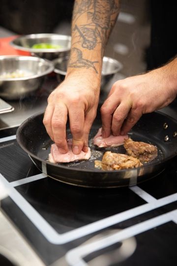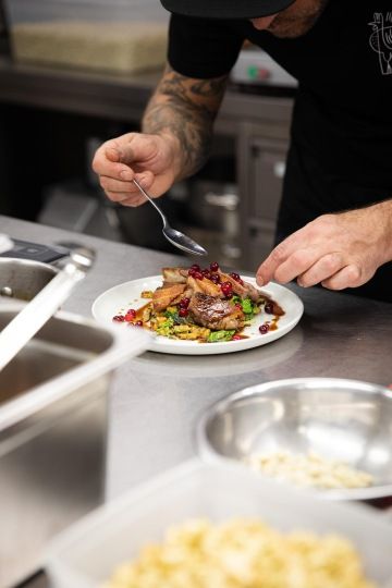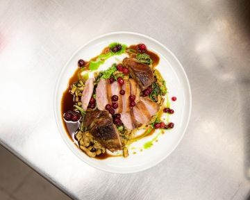 V KRO Kitchen na Vinohradské vám naservírujeme kachní special – konfitované lisované stehno a grilované kachní prso podávané s makovými špeclemi s kapustou, jablky a špekem. To vše zalité kachní demi glace a ozdobené nakládanou klikvou.