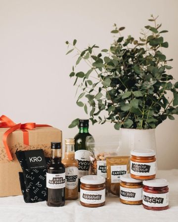 Nebo sáhněte po již připraveném balíčku plném našich dobrot, který bude k dostání v sobotu 18. prosince na našem vánočním marketu a poté v KRO Cofee. Dali jsme do něj náš vaječňák (0,2 l), svařákový sirup (0,2 l), náš olivový olej (0,5 l), oříškový party mix, vlastní kari koření, kimchi kečup, omáčku piri-piri, slaný karamel, kimchi (300 g) a speciální vánoční KRO ponožky ve dvou různých motivech. Vánočních balíčků bude pouze 100 a do tří z nich schováme KRO voucher na konzumaci v našich podnicích. Třeba se štěstí usměje právě na vás.