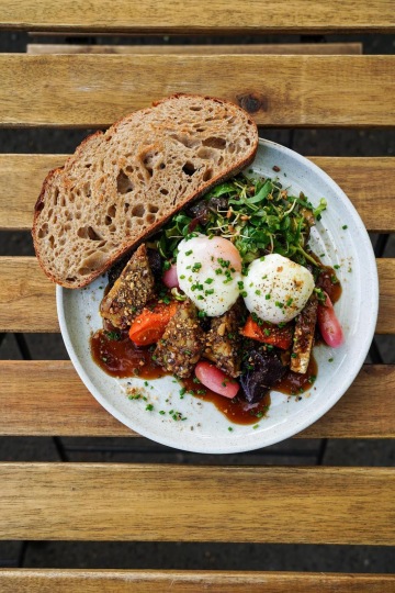 - Po vyndání z trouby dáme spařit na 80 °C po 40 minut. Následně tempeh nakrájíme na dvoucentimetrové plátky, opečeme dozlatova na (hnědém) másle a servírujeme například se zeleninovým salátem.